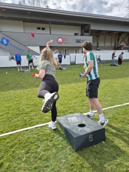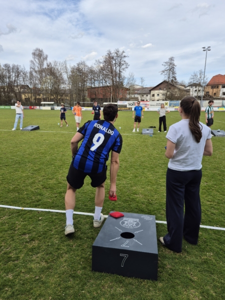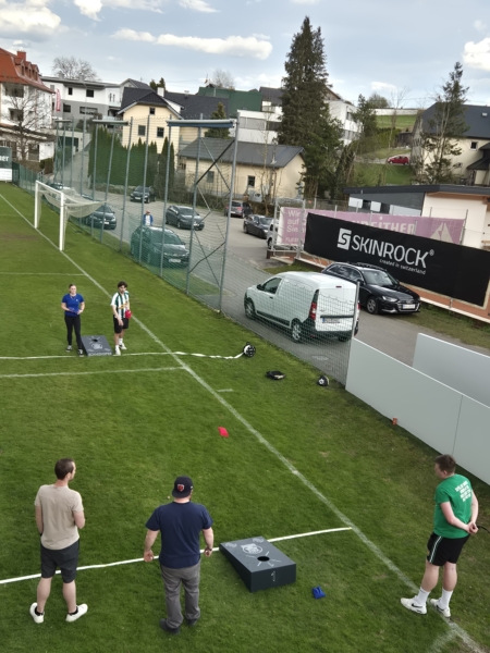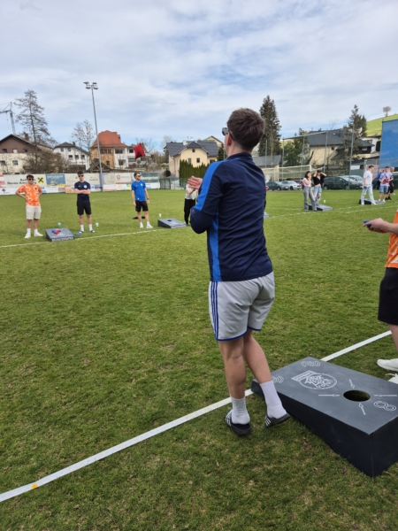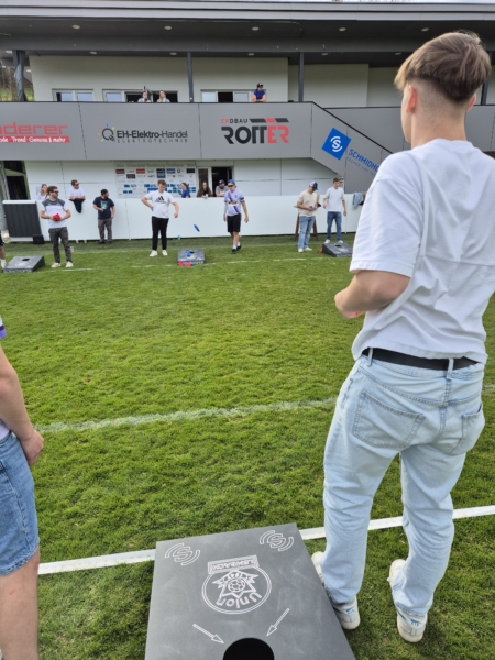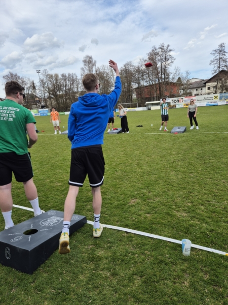 Nach einer offiziellen Begrüßung und Bekanntgabe der Turnierregeln durch unseren Obmann Robert Dietl wurde der Cornhole-Nachmittag von den beiden Turnierleitner Patrick Schürz und Jonas Hofmann eröffnet. Jedes Match dauerte acht Minuten, wer nach dieser Zeit die meisten (Differenz-)Punkte gesammelt hat, durfte drei Punkte in der Tabelle verbuchen, bei Gleichstand erhielten beide Teams einen Punkt. Die Gruppenphase bot jede Menge Abwechslung, auch die Ergebnisse hätten unterschiedlicher nicht sein können. Während beispielsweise Kathrin Mairhofer & Dominik Barth im Match gegen Laurin Altendorfer & Sebastian Pötscher mit einem Gesamtscore von 25:25 die Punkte teilten, holten sich Alex Mayer und Andreas Fuchs gegen Jakob Pechmann und Tobias Lauss mit einem 2:0 die drei Punkte. Den punktemäßig größten Unterschied holten Georg Lehner und Mario Lackinger beim 26:3 gegen Andreas Prieschl und Jonas Madlmayr.