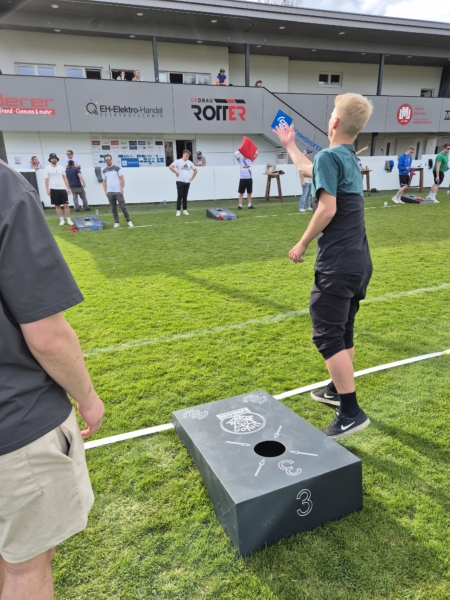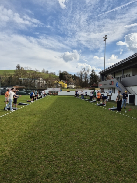 Zum zweiten Mal nach 2025 wurde der Lembacher Sportplatz zu einer Cornhole-Wurfanlage umfunktioniert und alles drehte sich darum, pro Durchgang die vier Cornhole Bags auf dem Board zu platzieren bzw. im Idealfall das Loch im Board zu treffen. Was in der Theorie relativ leicht klingt, erwies sich auch 2026 als durchaus herausfordernd und nicht alle Teams konnten punktemäßig anschreiben. Deutlich besser machten es die späteren Turniersieger Kathrin Mairhofer und Dominik Barth, sie blieben in der Gruppenphase ohne Niederlage und setzten sich in einem echten Finalkrimi knapp gegen Jakob Pechmann und Tobias Lauss durch.