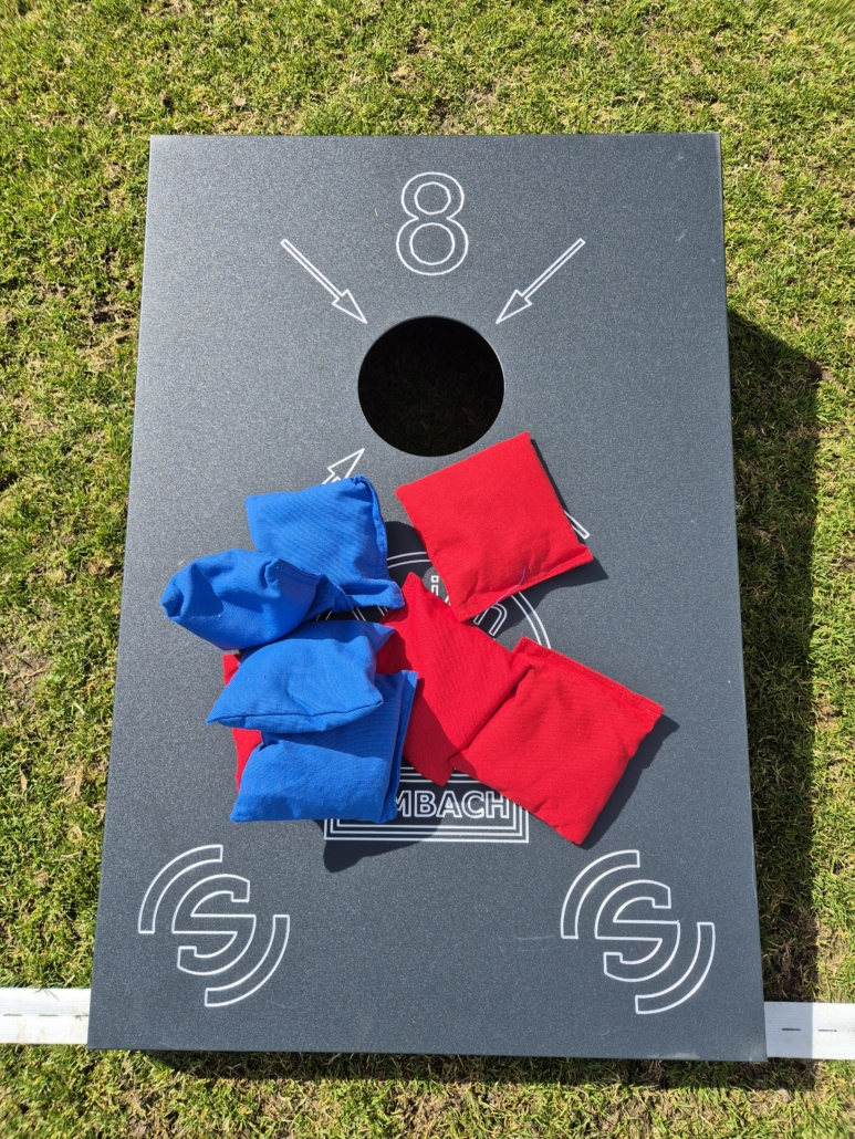 Unsere Boards stehen auf Anfrage zur Verfügung – ansonsten erleben sie den nächsten Einsatz spätestens beim 3. Lembacher Cornhole-Turnier 2027