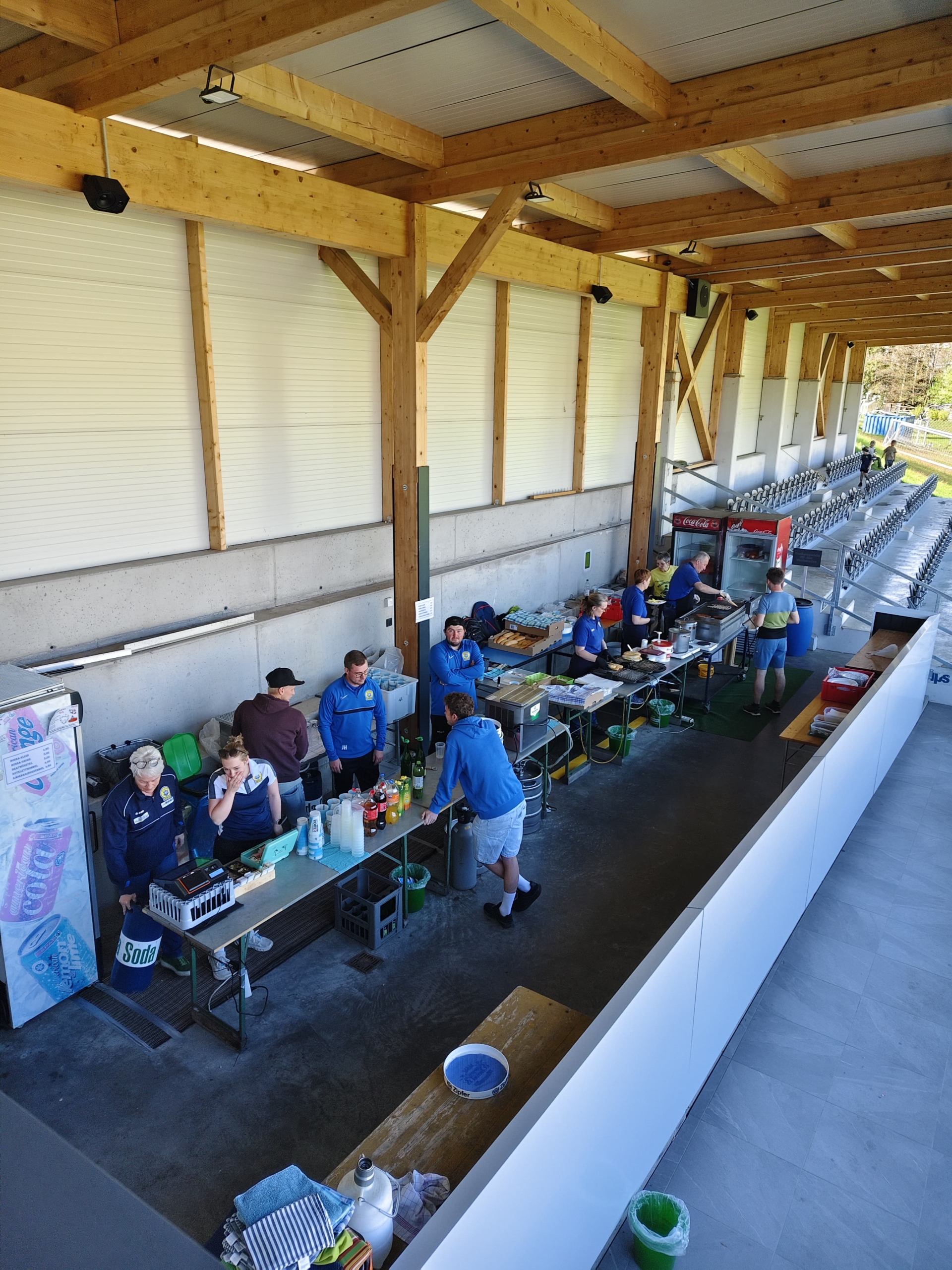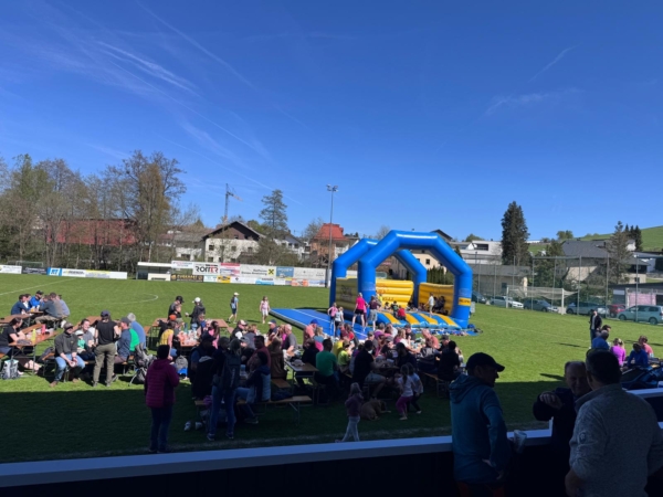 Neben kulinarischen Köstlichkeiten (Bratwürstel, Bosna, Käsekrainer, Pommes und Kuchen) sowie kalten Getränken waren diverse Bewegungsstationen für Kinder am Sportplatzgelände aufgebaut, unter anderem eine Airtrack-Matte, eine Fußballdartscheibe, die allseits beliebte Hüpfburg, kleine Fußballtore oder unsere neuen Cornhole-Boards. Neben den Teilnehmerinnen und Teilnehmern der offiziellen Wanderung fanden sich im Laufe des Nachmittags auch 2026 die Kameraden der FF Lembach am Sportplatz ein, die unabhängig vom Tag der Bewegung ihren FF-internen Wandertag an diesem Sonntag veranstalteten. Freut uns, dass ihr erneut unseren Sportplatz als Abschlusslocation gewählt habt!