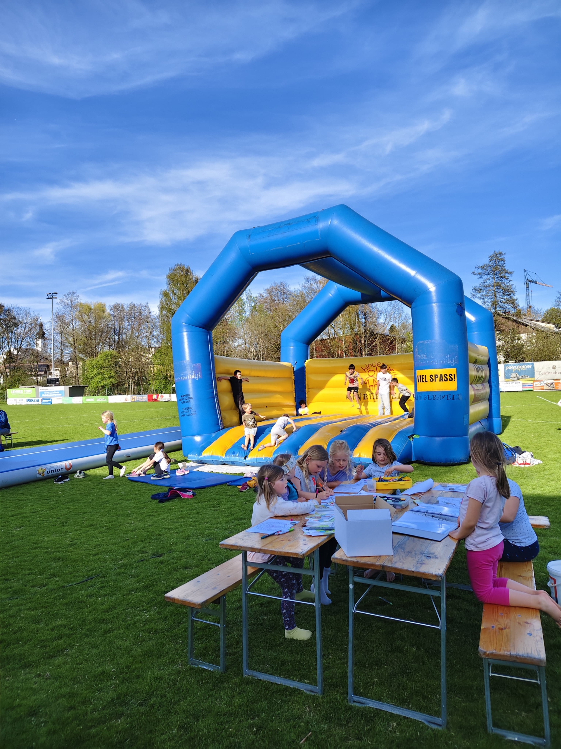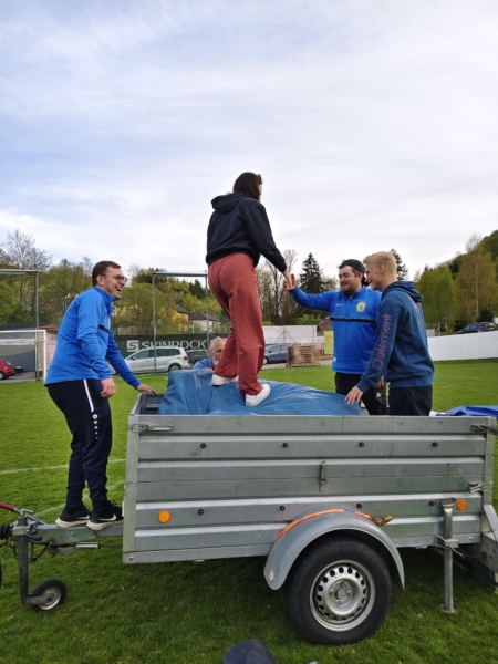 Zur Verfügung am Sportplatz standen Cornhole-Stationen, kleine Fußballtore,…